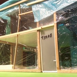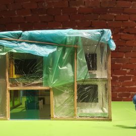 Das aus Müll gebaute Haus eines Flüchtlingslagers wird zum Designobjekt. Es illustriert das „Social Washing“ im Architekturbereich. So werden Shelter zur Villa, Mülltüten zur Gartenplastik und ein gutes Gewissen und das Klopapier gehen nie aus.